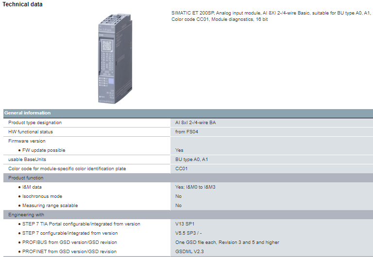 6ES7134-6GB00-0BA1 SIMATIC ET 200SP AI 2xI 2/4 Wire Siemens Analog Input Module With 1 Images |